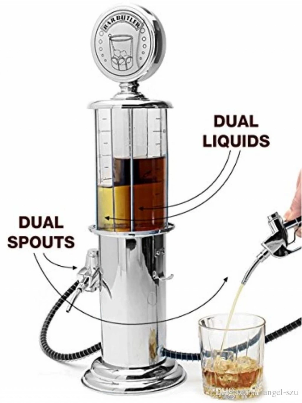 Ev partilerininizi gerçek bir bar partisi havasına sokmak ve gelen misafirlerinize unutulmayacak keyifli anlar yaşatmak istiyorsanız Bar Butler - İçki İstasyonu İçecek Pompası tam size göre. Akaryakıt istasyonlarındaki benzin pompası şeklinde tasarlanmış olan içki dolum sıyla, bardaklar keyifle doldurulacak. Gümüş metalik rengiyle bir hayli havalı ve şık bir görünüme sahip olan Bar Butler Liquor Pump, üzerinde yer alan ölçüsüyle de dilediğiniz miktarda içki servisi yapmanıza imkan sağlıyor.