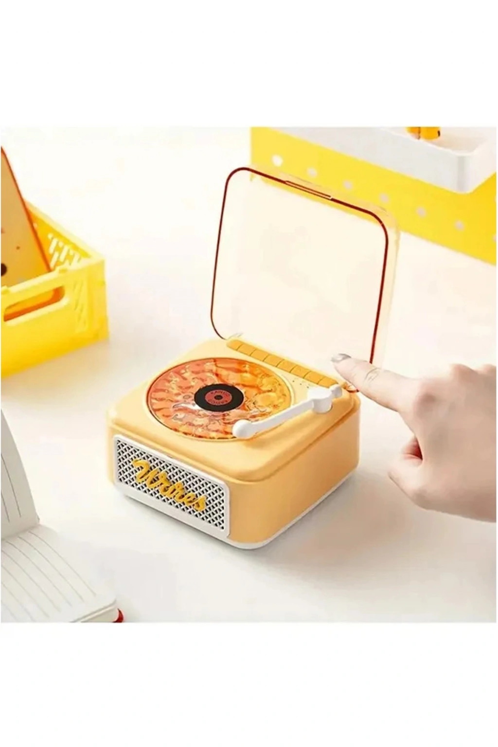 • Nostalji Mini Plak Görünümlü Radyolu Bluetooth Hoparlör 3d Ses Dalgası Retro Müzik Plak Sarı