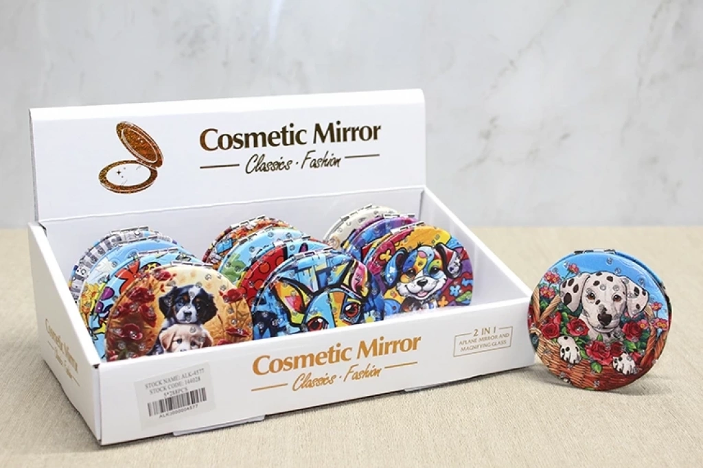 Sevimli Köpek Tasarımıyla Taş İşlemeli İnce El Aynası Yuvarlak Alk4577 Ürün Ölçüleri 7*7 Cm
